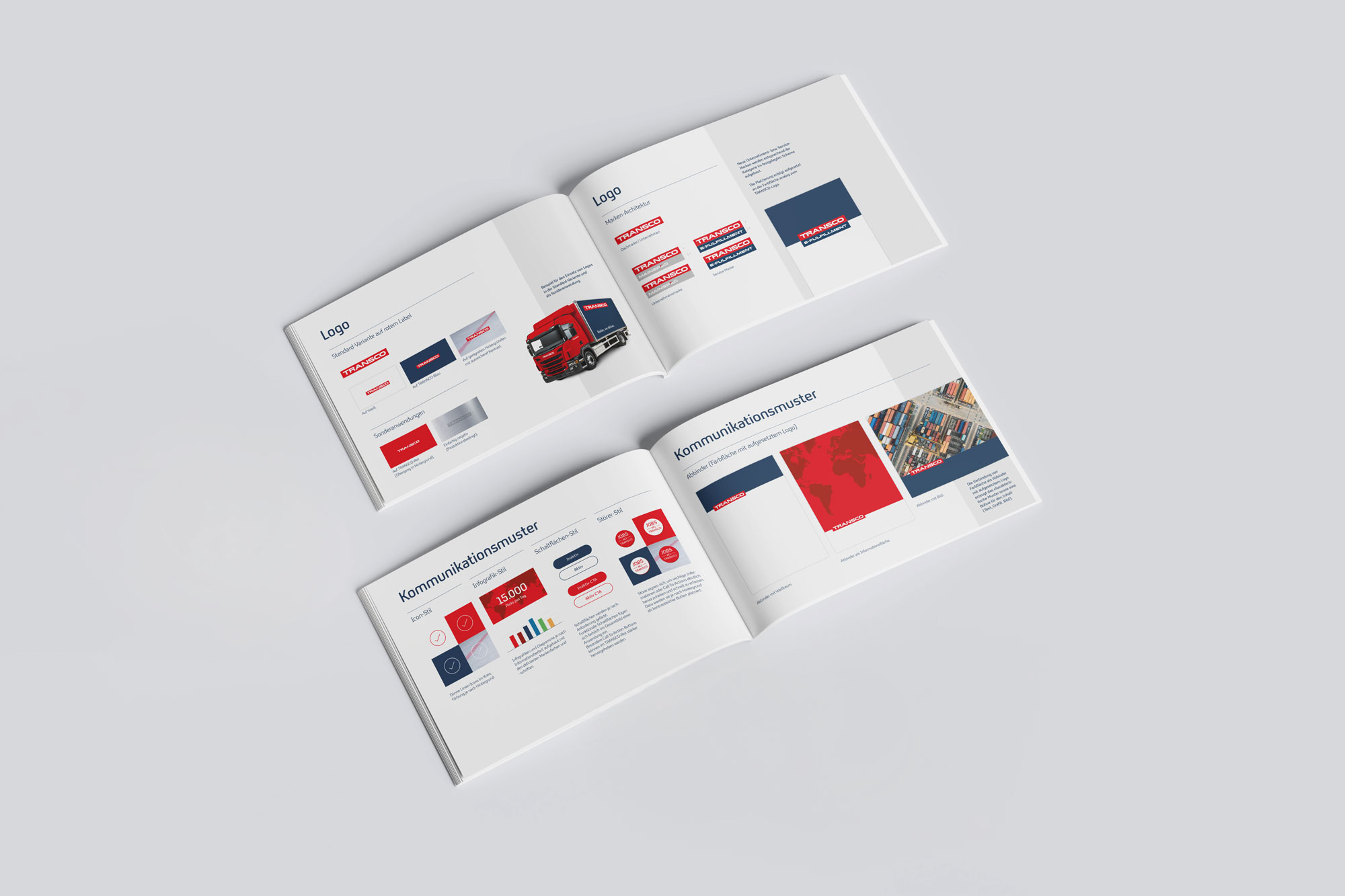 Das bestehende Corporate Design von Transco war funktional, wirkte jedoch an einigen Touchpoints (Präsentationen, Angebotsunterlagen, Fahrzeugbeschriftungen) inkonsequent angewendet. Gewünscht war – eine klare Festlegung von Farbnuancen und Weißraum­regeln – Präzisierung von Typografie-Hierarchien für Headline, Subline und Fließtext – Harmonisierung von Gestaltungselementen für Print, Digital­ und Fahrzeug­flächen – Aktualisierung der Bildsprache-Leitlinien ohne Änderung des Logos